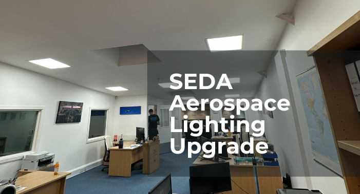 Tide Electrical Solutions recently completed a comprehensive lighting upgrade for SEDA Aerospace at their offices near Worthing. The existing fluorescent panel lights had begun to fail, producing uneven light levels, discolouration and increased maintenance demands. To improve energy efficiency, enhance visibility and modernise the workspace, SEDA Aerospace commissioned us to supply and install a full LED replacement.
